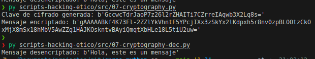 • Ejercicio 7: instalar la biblioteca de Python cryptography y encriptar un mensaje.